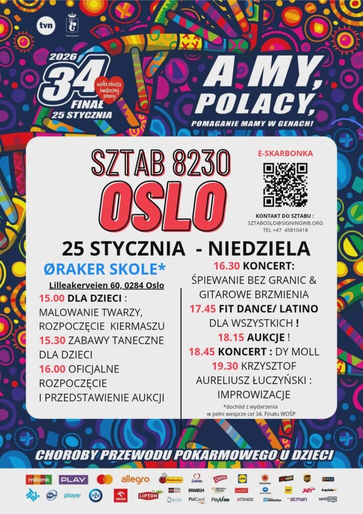 W niedzielne popołudnie, 25 stycznia 2026 roku, szkolna aula Øraker skole w Oslo przeistoczy się w norweskie centrum 34. Finału Fundacji Wielka Orkiestra Świątecznej Pomocy, dołączając tym samym do tysięcy miast na całym świecie, które tego dnia wybierają wspólny cel – pomoc dzieciom.