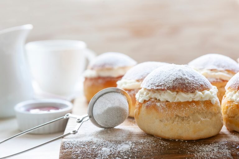 Niedziela fastelavn – najbardziej kojarzy się dziś z fastelavnsboller, czyli słodkimi bułkami drożdżowymi przekrojonymi na pół, wypełnionymi bitą śmietaną i dżemem oraz posypanymi cukrem pudrem.