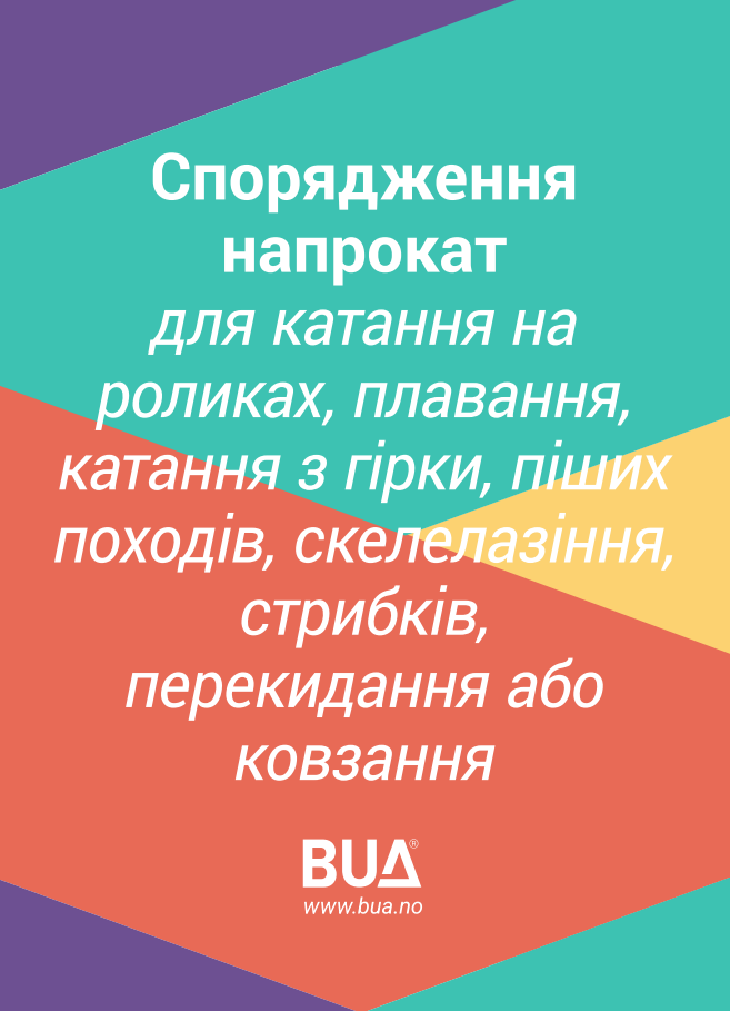 BUA (Barn-Unge-Aktivitet, Діти-Молодь-Діяльність) норвезька система закладів, де можливо взяти в оренду обладнання для туризму та спорту. Це може бути велосипед, палатка та карімат, ракетки для тенісу, санки, ковзани, лижі, сноуборд та багато іншого,в залежності від сезону. Метою є доступність спорту для кожного, незалежно від достатку та можливостей окремої людини.
