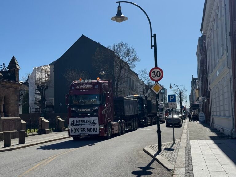 Akcja „Dieselbrølet” w Agder, w piątek 24 kwietnia, odbywała się w dwóch kolumnach. Ciężarówki wyruszyły z Mandal i z Arendal, by spotkać się w centrum Kristiansand około 15.00.
