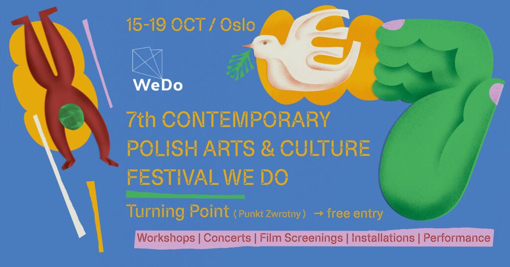 We Do Festival Contemporary Polish Arts & Culture odbędzie się w Oslo po raz siódmy. Tym razem myśl przewodnia to kairos – chwila intensywnej obecności i przemiany. Festiwal, jak piszą organizatorzy, prezentuje sztukę współczesną odważną, inkluzywną i o międzynarodowym charakterze. W tegorocznej edycji – „Punkt zwrotny” – tradycja spotka się z eksperymentem, a publiczność będzie współtworzyć z artystami.